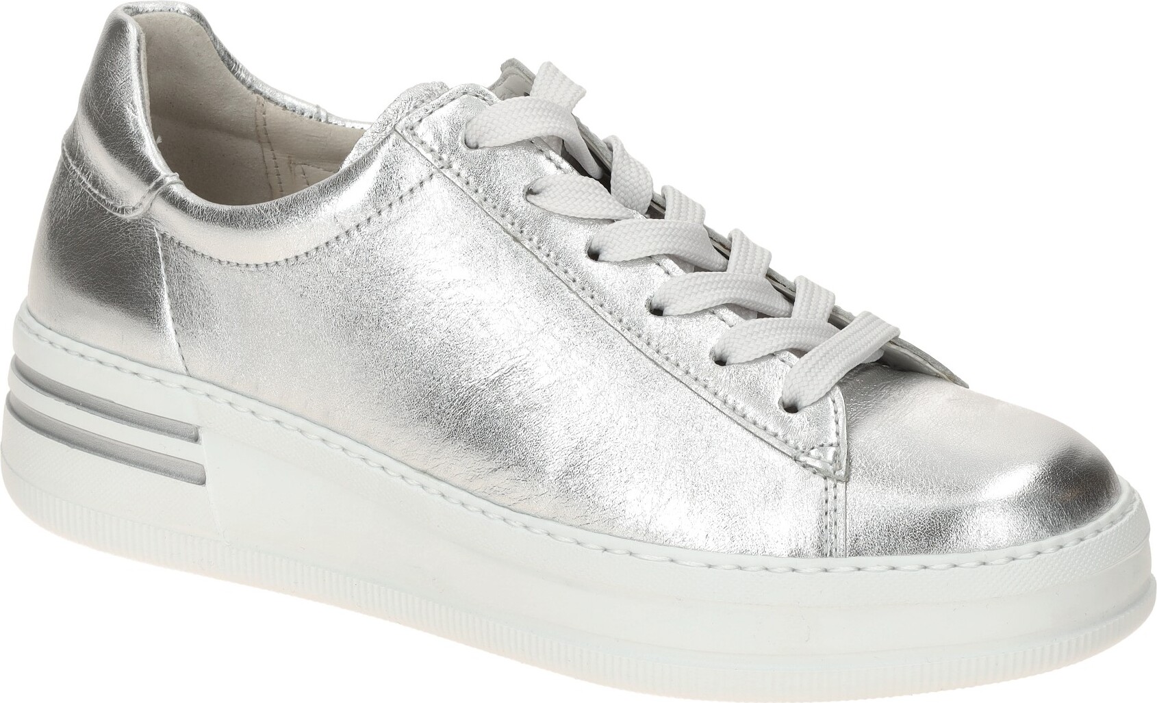 Größe , 39, |Absatzhöhe , 4 cm, |Farbe , silber (10), |Obermaterial , Glattleder, |Innenmaterial , Leder, |Materialzusammensetzung , Glattleder, |Stil , Sneaker, |Verschluss , Schnürsenkel, |Innensohlenmaterial , herausnehmbare Einlegesohle, Wechselfußbett, |Innensohleneigenschaften , kein Wechselfußbett, |Schuhweite , G, |