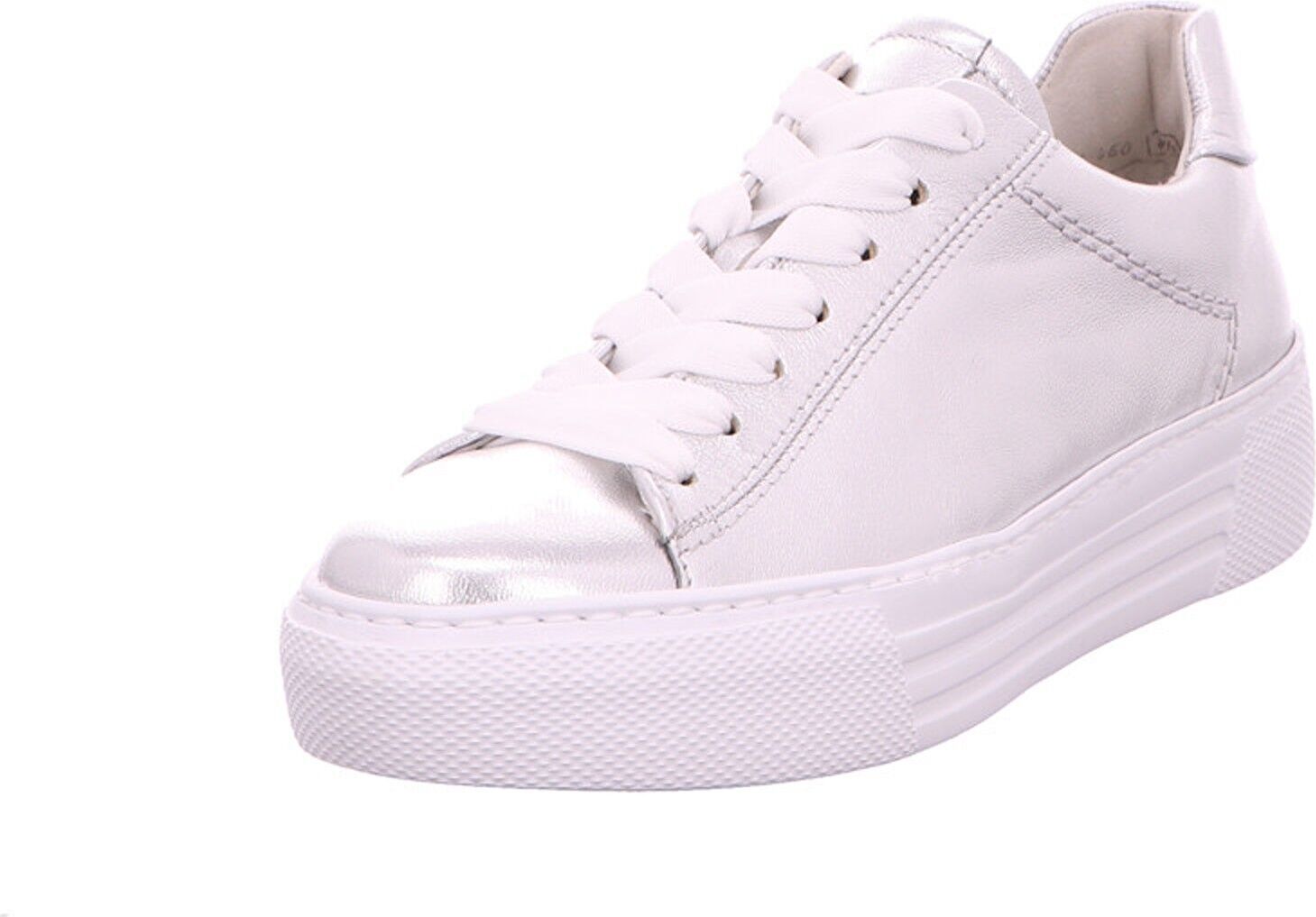 Damen - Sneaker aus Leder in silber mit Schnürverschluss und Wechselfußbett.
