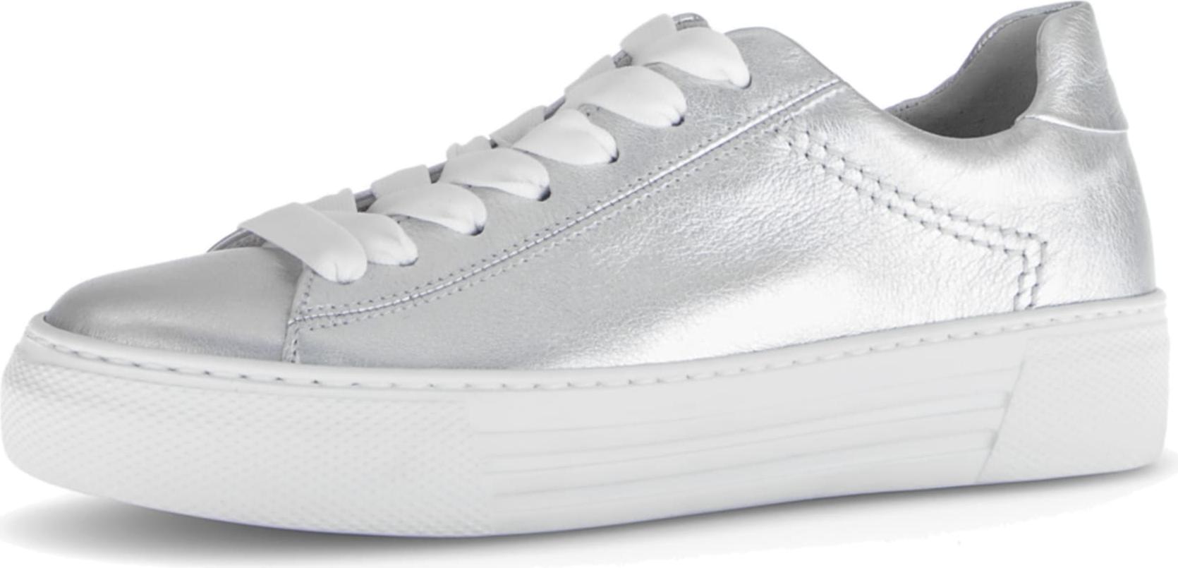 Größe , 37.5, |Absatzhöhe , 4 cm, |Farbe , silber (80), |Obermaterial , Glattleder, |Innenmaterial , Microfutter, |Materialzusammensetzung , Glattleder, |Stil , Sneaker, |Verschluss , Schnürsenkel, |Innensohlenmaterial , herausnehmbare Einlegesohle, Wechselfußbett, |Innensohleneigenschaften , kein Wechselfußbett, |Schuhweite , G, |