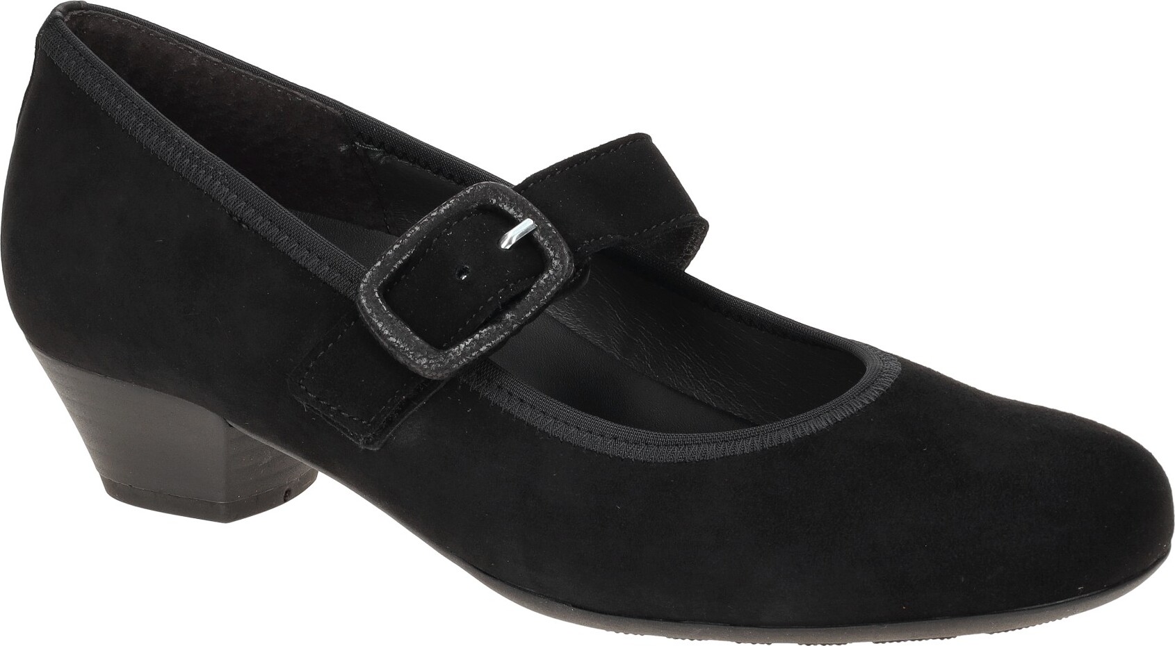 Größe , 37.5, |Absatzhöhe , 3 cm, |Farbe , schwarz (47), |Obermaterial , Wildleder, |Innenmaterial , Leder, |Materialzusammensetzung , Rauleder, |Stil , Pumps, |Verschluss , Klettverschluss, |Innensohlenmaterial , herausnehmbare Einlegesohle, Wechselfußbett, |Innensohleneigenschaften , kein Wechselfußbett, |Schuhweite , H (weit), |