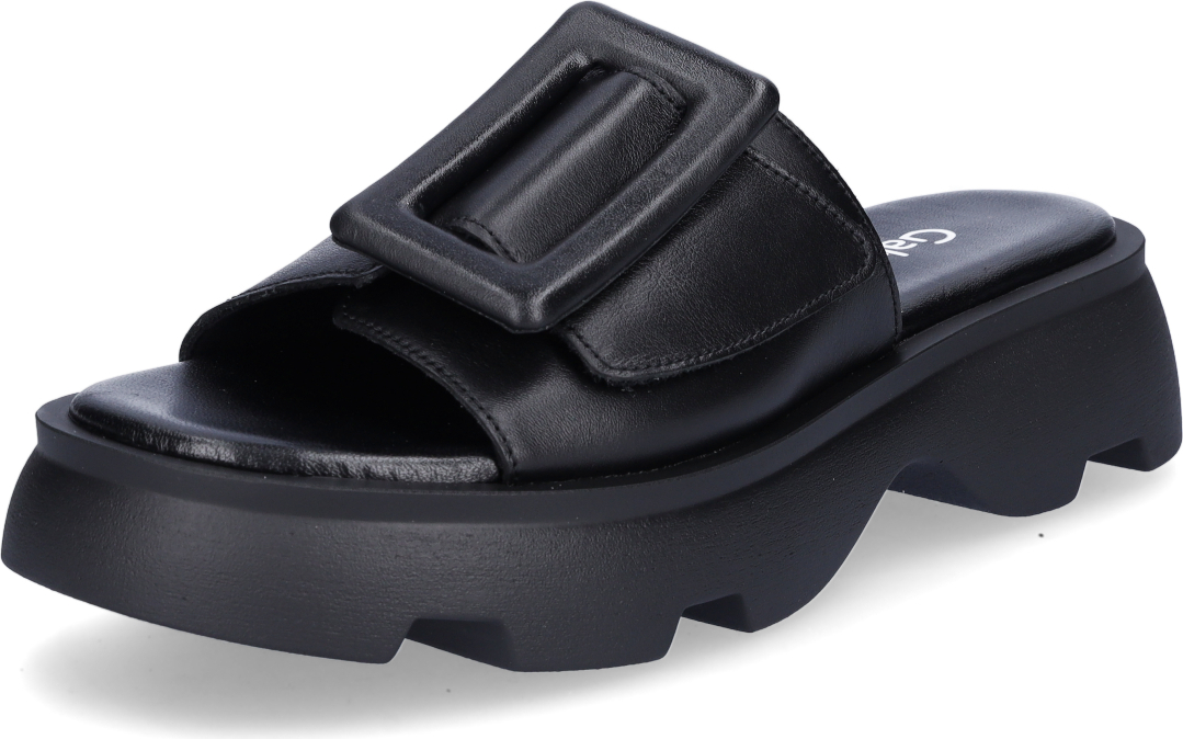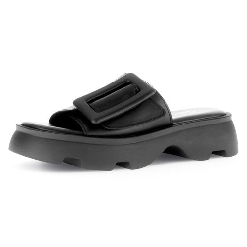 Gabor YORK Pantolette, Plateau, Sommerschuh, Komfortschuh, auffällige Zierschnalle, G-Weite (schwarz)
