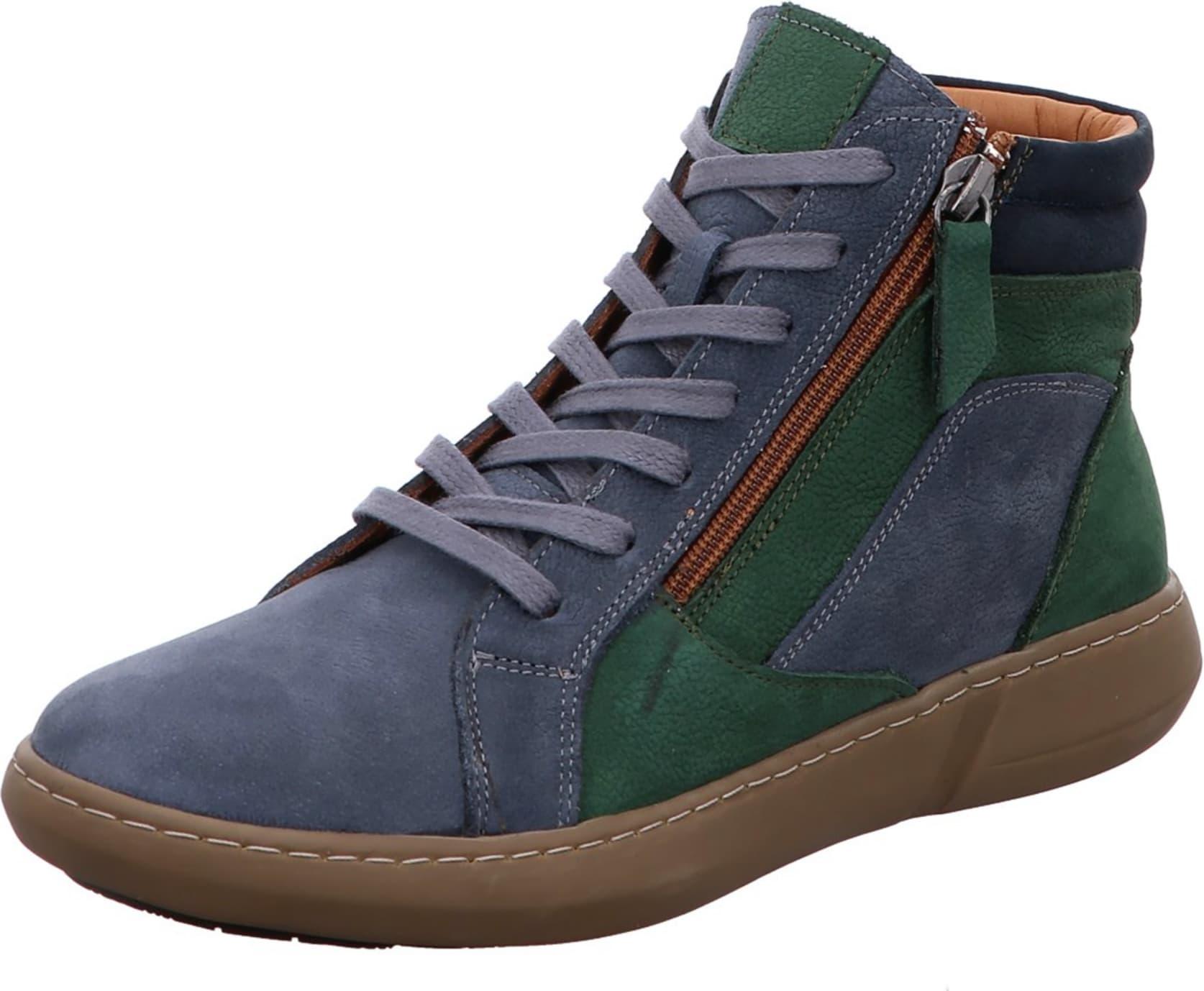 Gemini Damen Schnürboot blau 390096-03-087ProdukteigenschaftenObermaterial: LederFarbangabe des Herstellers: blau/grünFutter: TextilInnensohle: Textil, herausnehmbarLaufsohle: flexibel, gummiertVerschluss: Schnürung, ReißverschlussSchafthöhe: 10 cmSchaftweite: 27,5Passform: normalSonstiges: nicht wasserdicht