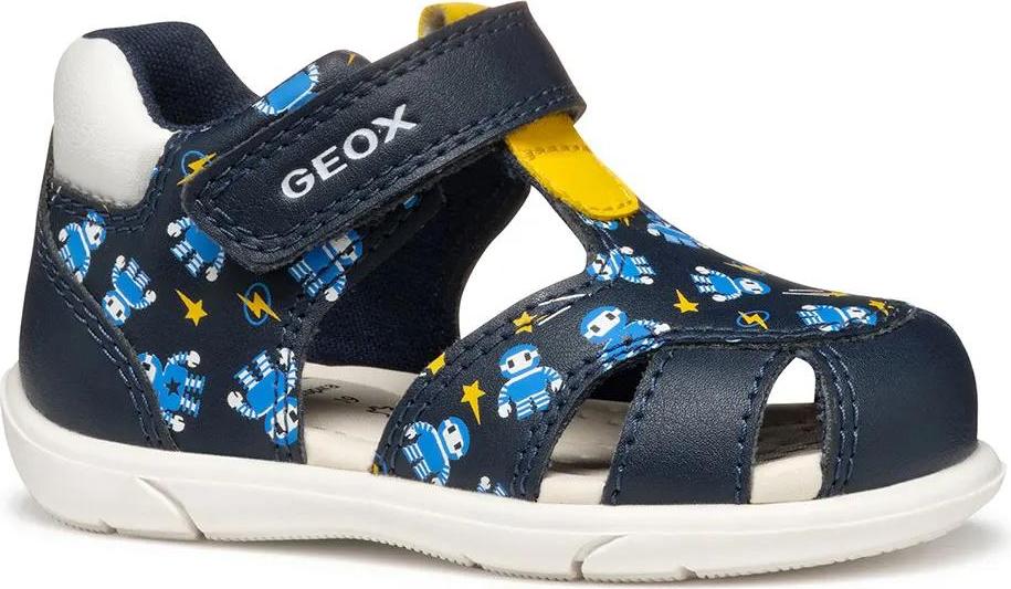 Geox B SANDAL ZAPITO BOY Lauflernschuh, Babyschuh, Sandale, Klettschuh mit süßem Roboter Motiven (blau/gelb)