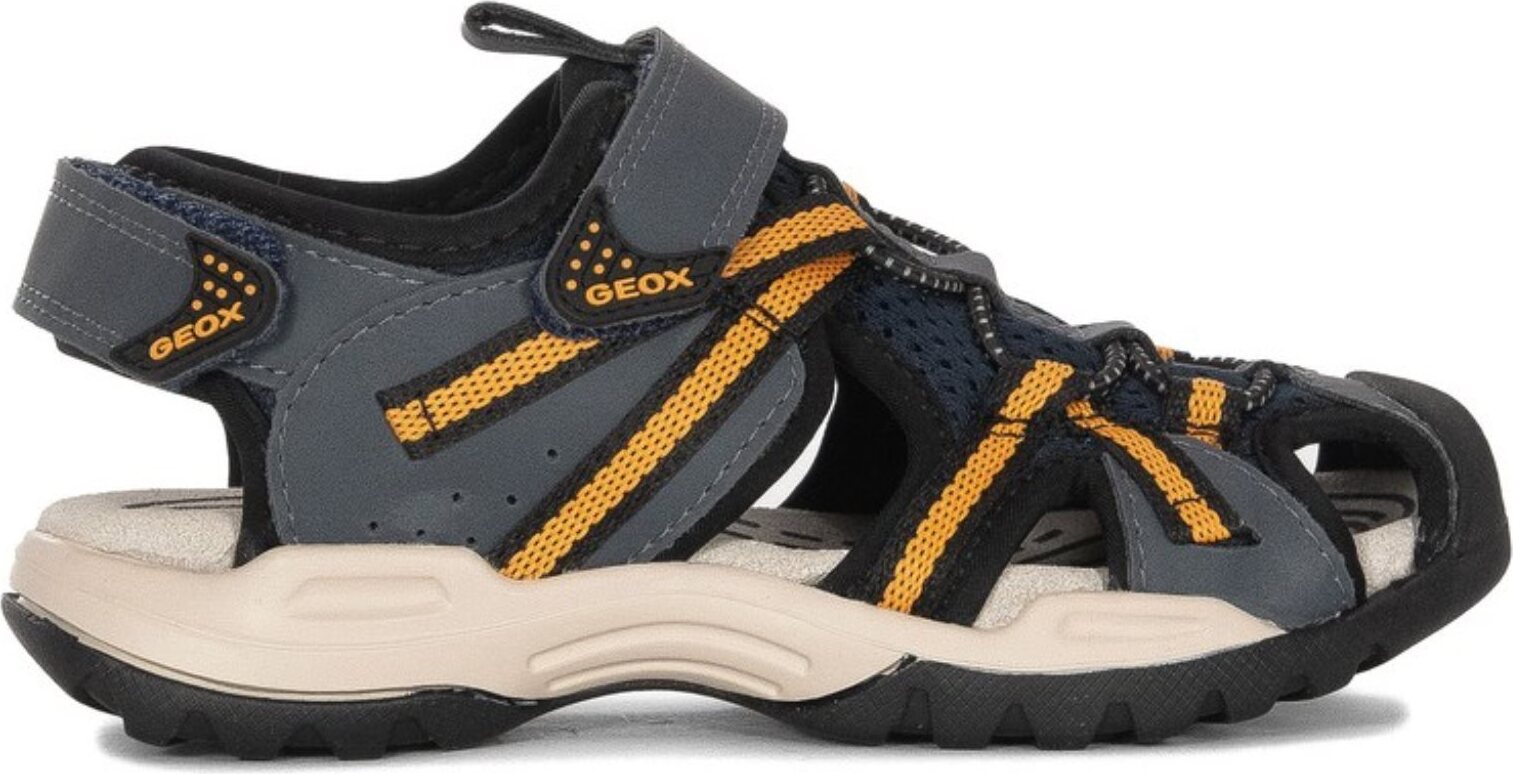 Geox J BOREALIS BOY Sandale, Trekking Sandale, Klettschuh mit zusätzlichem Fersen-Klettverschluss (blau/orange)
