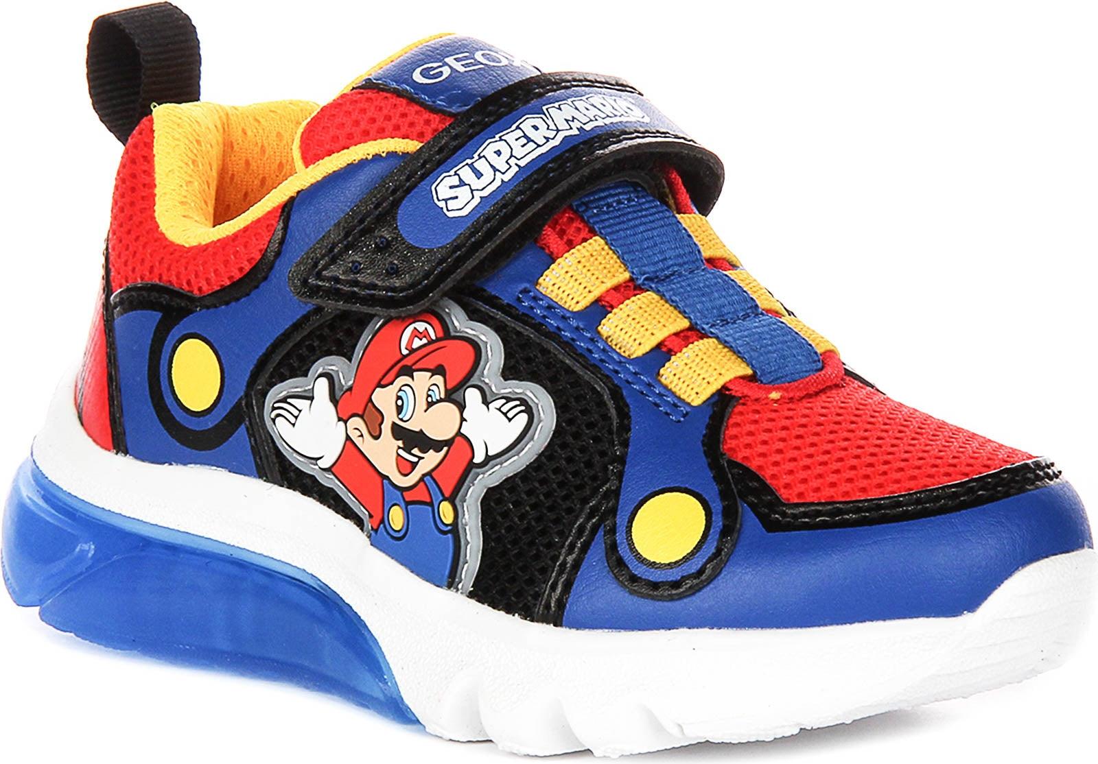 Das Modell ist aus der Zusammenarbeit zwischen Geox und Marvel entstanden und ist am farbenfrohen Oberschuh mit Grafiken des Videospiels Super Mario versehen.