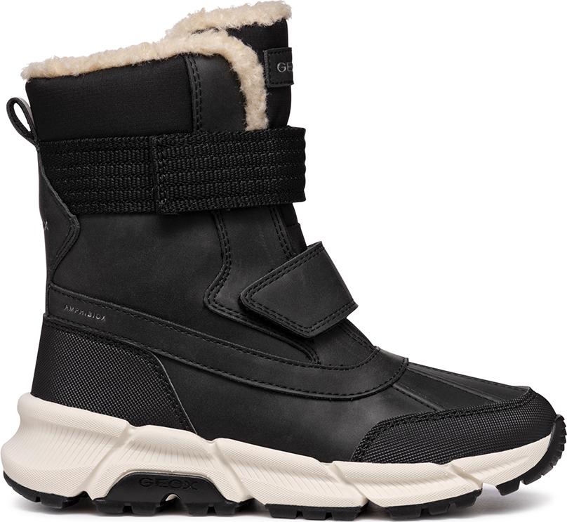 Geox J FLEXYPER PLUS BOY Winterstiefel Snowboots, Klettstiefel mit Warmfutter, Größenschablone zum Download (schwarz)