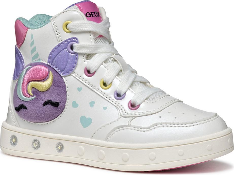 Geox J SKYLIN GIRL Blinkschuh Sneaker Schnürboots, Blinkschuh mit Glitzer und Blinkfunktion (bunt/weiß)