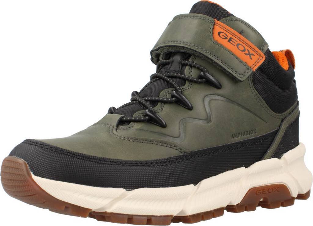 Die sportliche Schnürstiefelette von Geox für Kinder überzeugt durch eine Kombination aus Schnürung und zusätzlichem Klettverschluss, der eine perfekte Anpassung an den Fuß ermöglicht. +
