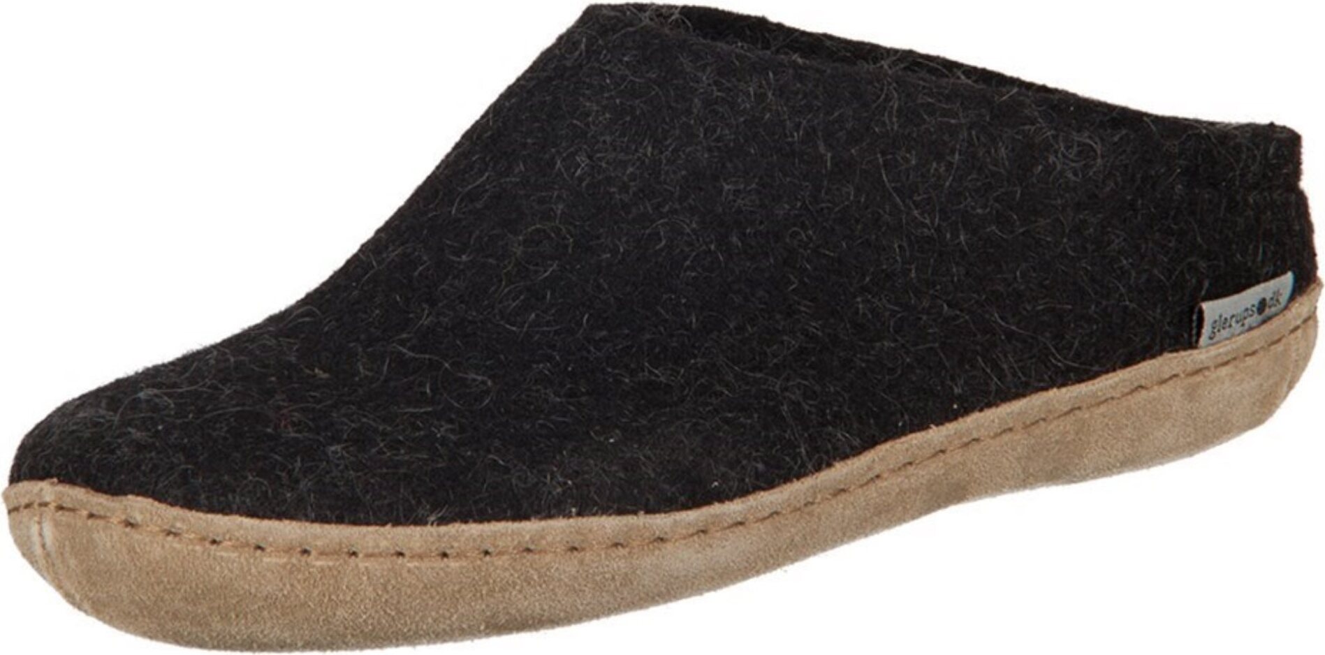 glerups dk Modell B Filzpantoffel Ledersohle Pantoffel antibakteriell, atmungsaktiv, hautschonend, geruchsneutral (schwarz)