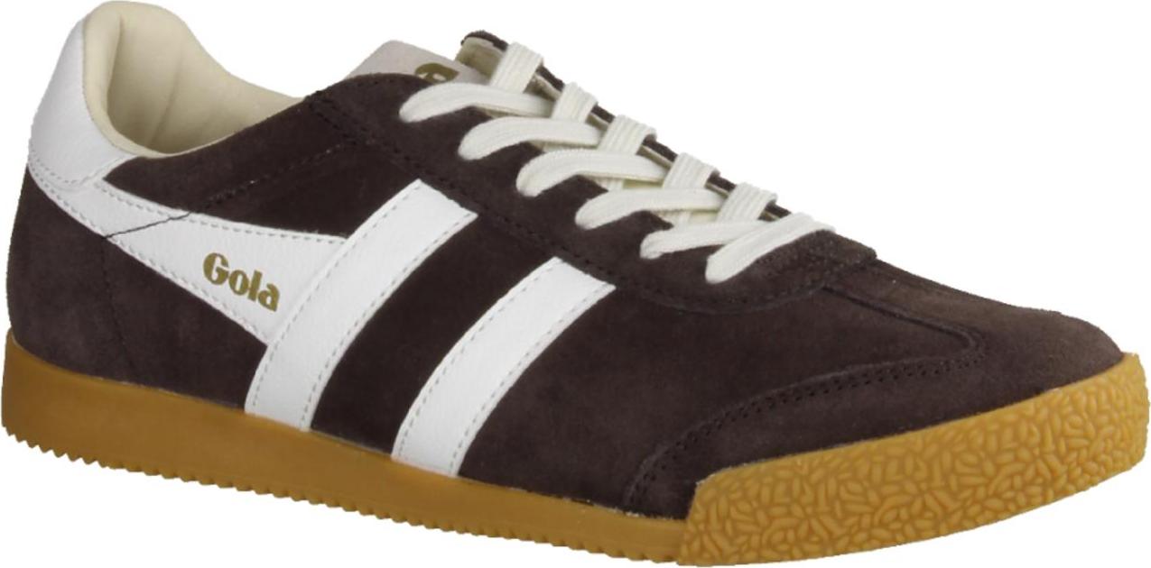 Marke: GolaModell-Nr.: CLB538FAModellname: ELANArt: Damenschuhe - Halbschuhe - SneakerFarbe: dunkelbraun +, weiß +, Sohle in braun (mocha/white)Obermaterial: Velourleder +, Glattleder MixInnenfutter: Textil, FrotteeInnensohle: Textil Fußbett, Frottee-BezugWechselfußbett: herausnehmbare InnensohleLaufsohle: GummisohleVerschluss: 6fach SchnürungAbsatz: flach - kein AbsatzSchuhform: rundGrößenangabe: fällt normal ausWeitenangabe: G - normal Weiteinterne Artikelnummer für Ihre Rückfragen: 236-31-0012