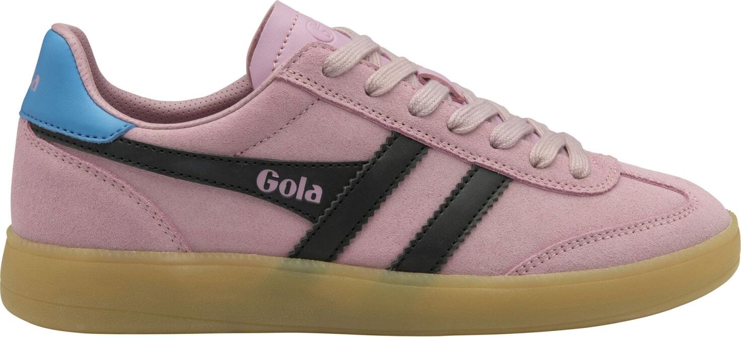 Gola Damen Sneaker aus Rauleder in Rosa mit schwarzen Glattleder Streifen, Schnürung und Innenausstattung aus Textil