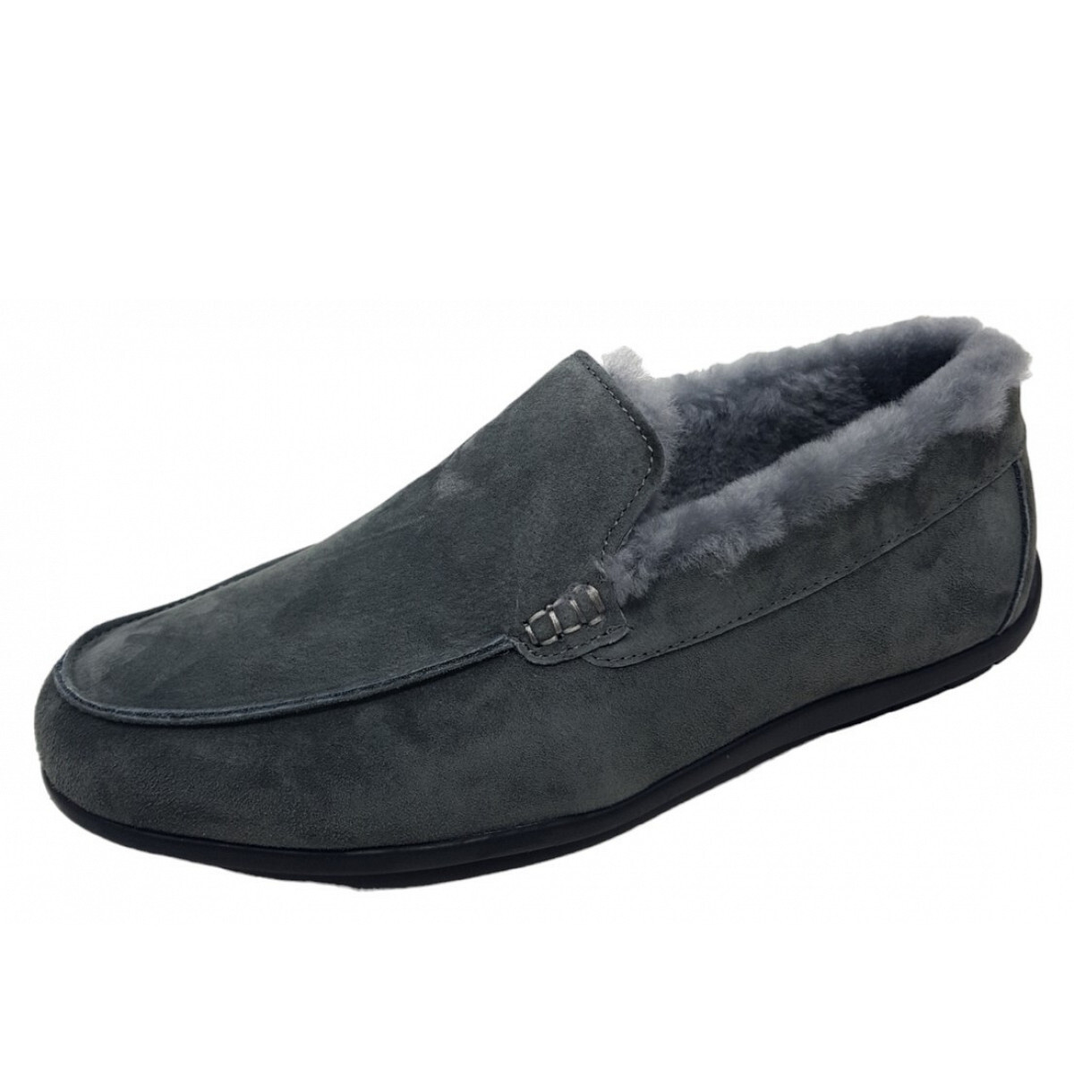 Größe , 44, |Farbe , Grau, |Obermaterial , Nubukleder, |Innenmaterial , Lammfell, |Verschluss , Schlupf/offen, |Schuhspitze , Rund, |Laufsohlenmaterial , Gummi, |Schuhweite , mittel, |