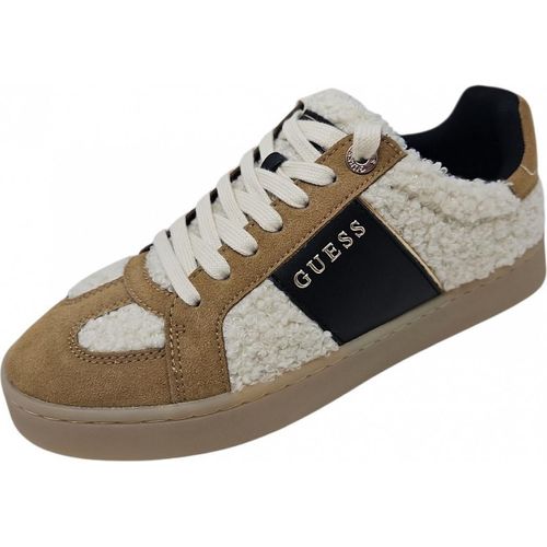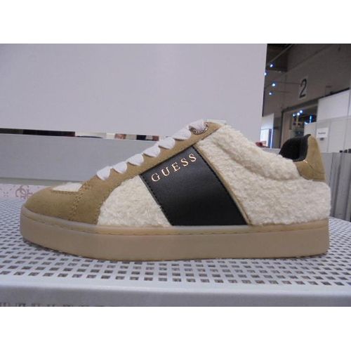 Guess Damen Sneaker aus Textil, Glatt- und Raulederimitat in Offwhite, Braun und Schwarz mit Textilfutter und textilem Wechselfußbett