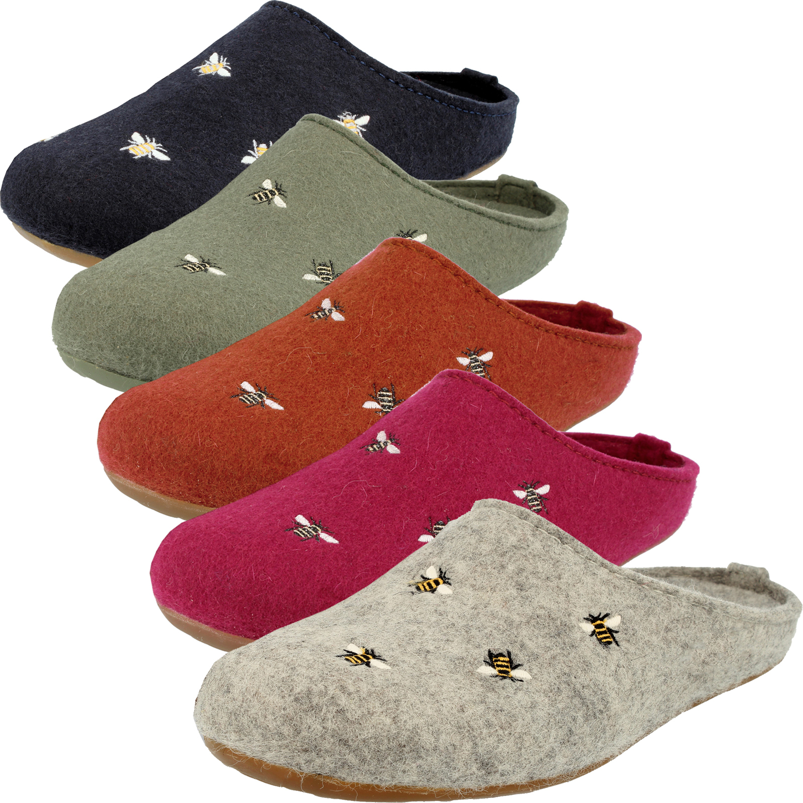 Haflinger Everest Api Filzpantofffeln mit Applikation Bienen Wechselfußbett Hausschuh (grau)