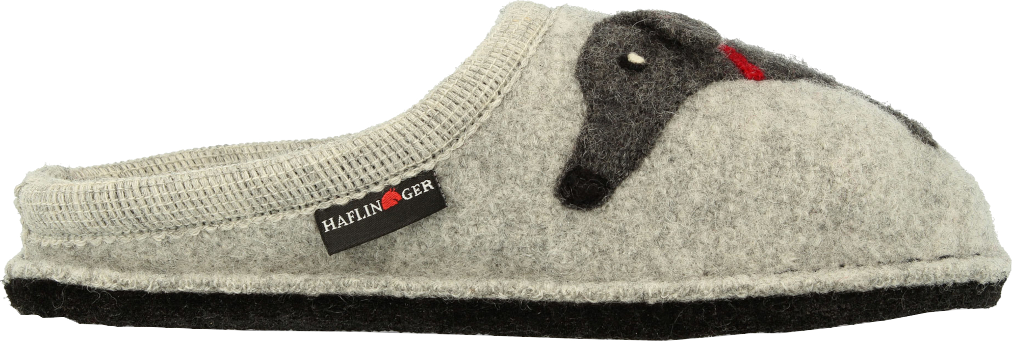 Haflinger Flair Dackel Pantoffeln aus gewalkter Wolle Hundemotiv Unisex Hausschuh (grau)