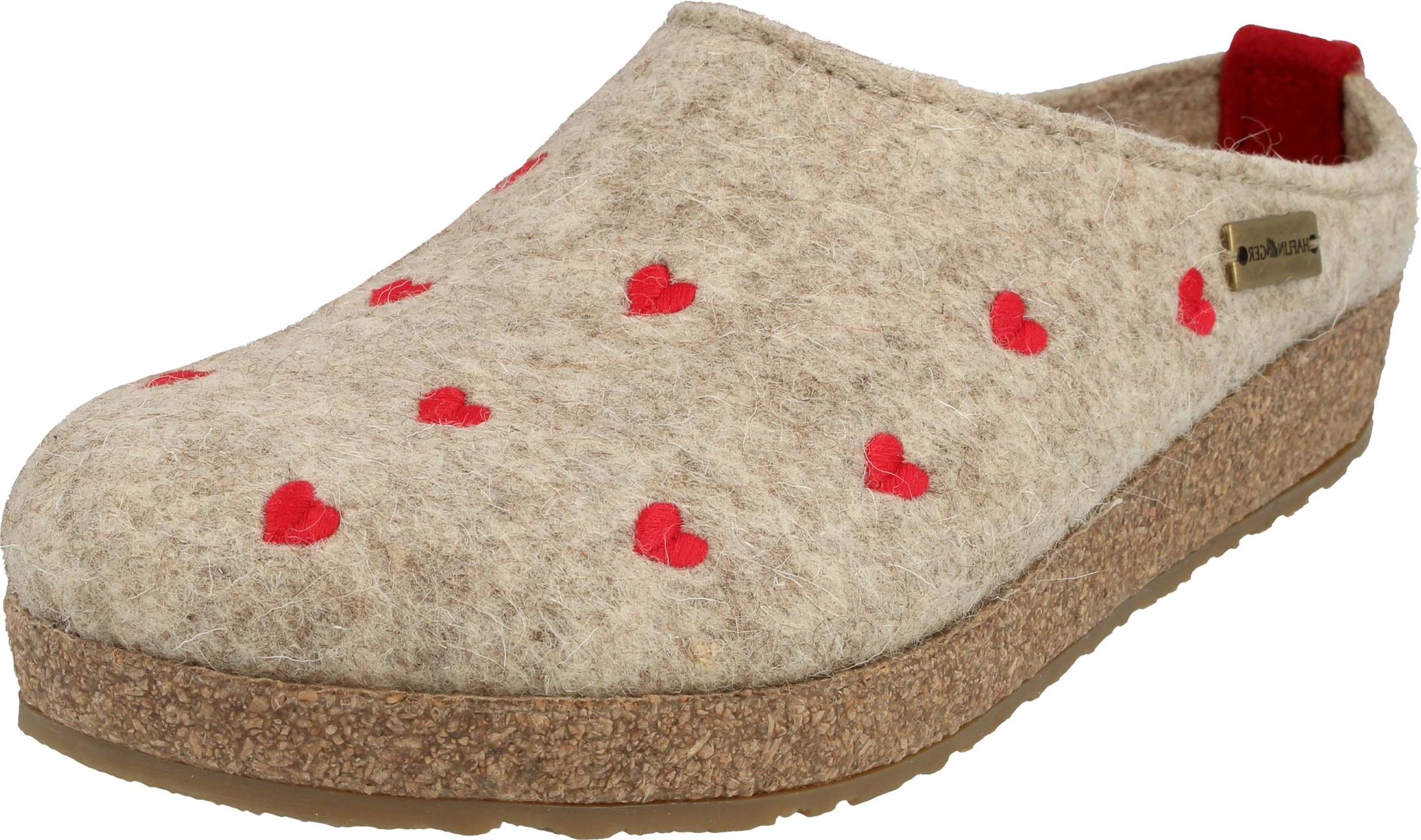 iesse Schuh Haflinger Damen Pantoffel Schurwolle Herz Stickerei Grizzly Cuoricini 741031, Größe:38 EU, Farbe:Beige 741031_46_38
