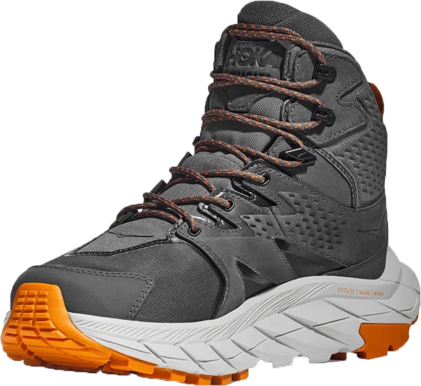 Der Anacapa Mid GORE-TEX ist ein nachhaltig hergestellter Wanderschuh. Er eignet sich für Outdoor-Einsätze, ist grau mit orangefarbenen Akzenten und verfügt über eine wasserdichte GORE-TEX-Membran.