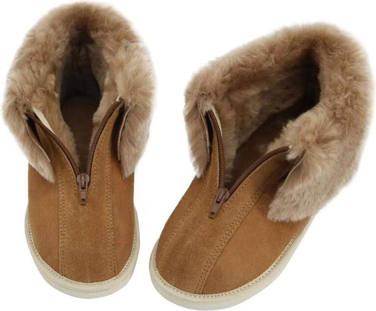 • die Lammfell Hausschuhe Alaska mit weichem Lammfellkragen zum hochklappen versprechen einen ausgezeichneten Tragekomfort • durch den Reißverschluss ist ein bequemes An- und Ausziehen der Hausschuhe garantiert • bis in die Spitzen aus 100% deutschen Merino Lammfell von bayerischen Schäfereien • das dicke Merino Lammfell bewirkt eine stoßdämpfende Wirkung und schont damit Ihre Gelenke • die feste EVA Laufsohle ist nässebeständig und strapazierfähig, daher auch geeignet um vor die Tür zu gehen • durch das Merino Lammfell wird Feuchtigkeit und Hitze abgeleitet, aufgenommener Schweiß wird unmittelbar an die Luft abgegeben • Lammfell ist ein Naturprodukt, sehr hautfreundlich und somit auch ideal für empfindliche Diabetiker-Füße. +