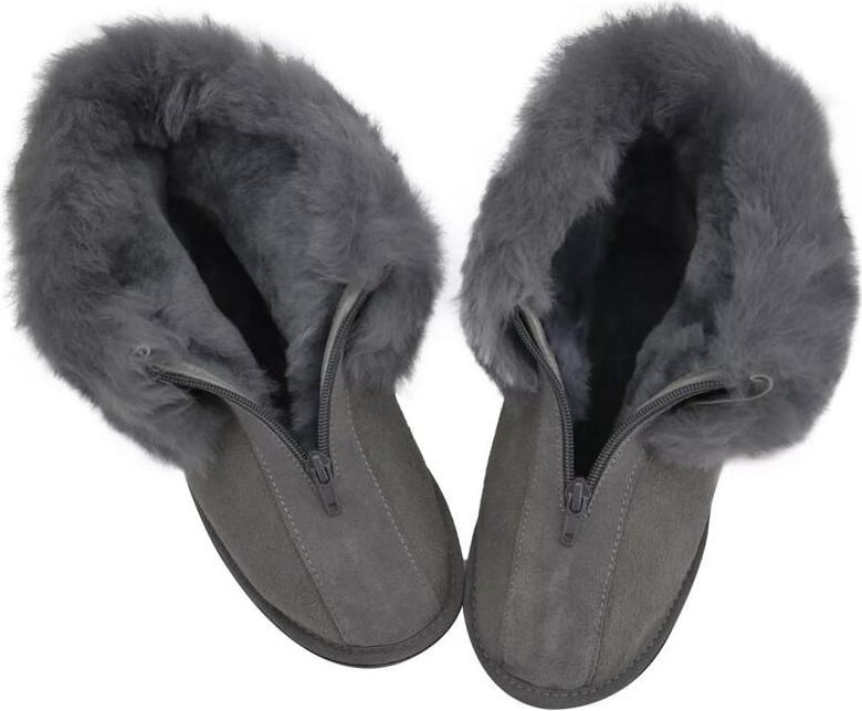 Die Lammfell Hausschuhe Alaska mit weichem Lammfellkragen zum hochklappen versprechen einen ausgezeichneten Tragekomfort Durch den Reißverschluss ist ein bequemes An- und Ausziehen der Hausschuhe garantiertBis in die Spitzen aus 100% deutschen Merino Lammfell von bayerischen SchäfereienDas dicke Merino Lammfell bewirkt eine stoßdämpfende Wirkung und schont damit Ihre GelenkeDie feste EVA Laufsohle ist nässebeständig und strapazierfähig, daher auch geeignet um vor die Tür zu gehenDurch das Merino Lammfell wird Feuchtigkeit und Hitze abgeleitet, aufgenommener Schweiß wird unmittelbar an die Luft abgegebenLammfell ist ein Naturprodukt, sehr hautfreundlich und somit auch ideal für empfindliche Diabetiker-Füße. +