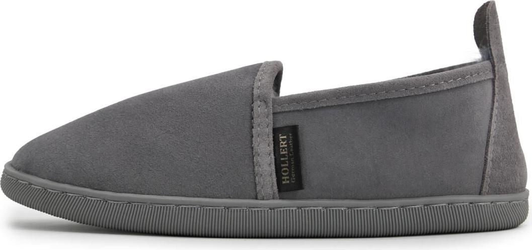 Hollert Hausschuh Unisex Hüttenschuhe Hubert gefüttert Echtleder Merino Schaffell (grau)