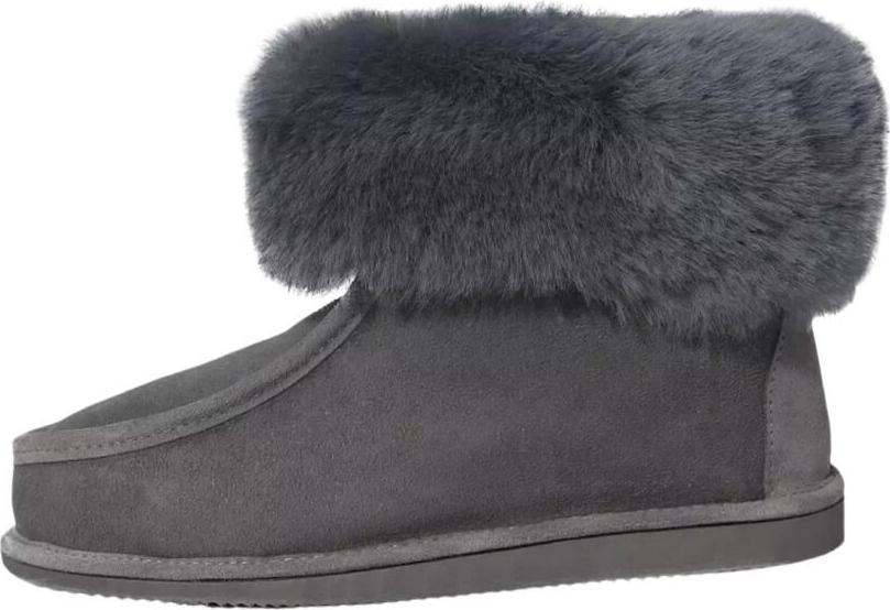 Hollert Hüttenschuhe Unisex Hausschuhe Adam Echtleder Merino Schaffell warm & atmungsaktiv (grau)
