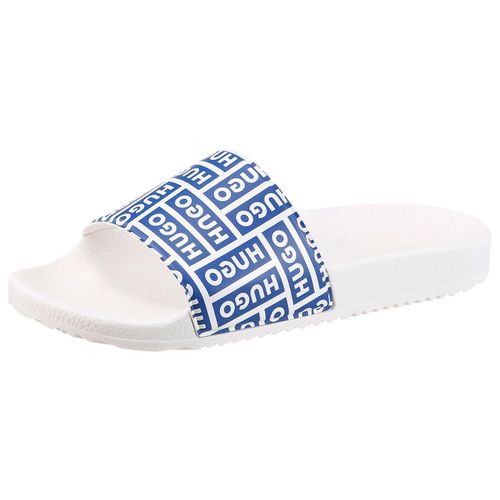 HUGO Blue Timein_slid Badepantolette Strandschuh, Schlappen, Sommerschuh, Flat mit Logoschriftzügen (blau/weiß)