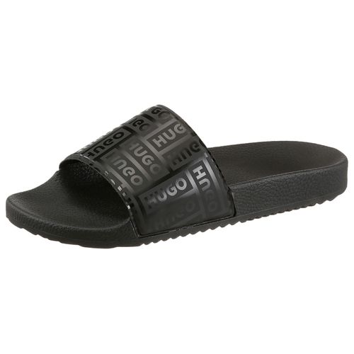 HUGO Blue Timein_slid Badepantolette Strandschuh, Schlappen, Sommerschuh, Flat mit Logoschriftzügen (schwarz)