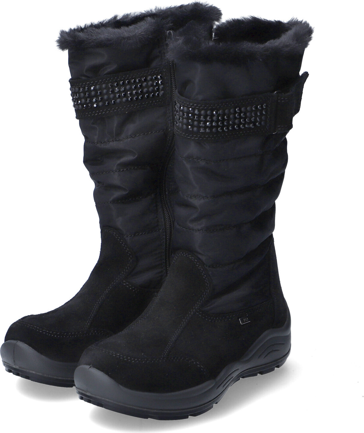 Imac Mädchen Stiefel/ Winterstiefel Schwarz Leder-Textil-Mix - wasserfest und Atmungsaktiv - Reißverschluss - Ziernähte - verstärkter Zehen- und Fersenbereich - gepolsterte, herausnehmbare Decksohle - rutschhemmende Laufsohle mit Profil.