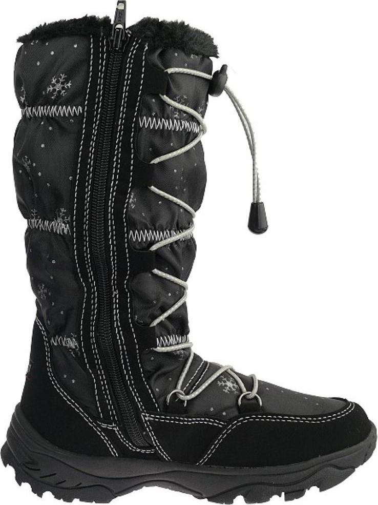 top modischer Mädchenstiefel im zauberhaften Design mit Slam-Tex - wasserabweisend, atmungsaktiv durch die eingearbeitete Membran wahlweise in 4 tollen Farben (weiß,grau,blau,schwarz) verziert mit kuscheligem Kunstfell am oberen Schaftende, glitzernden Schneekristallen und einer diagonalen Schnürung seitlicher Reissverschluß und zusätzliche Schnürung vorn (zur einmaligen Weiteneinstellung am Bein) Material außen: Nubuklederimitat und Textil