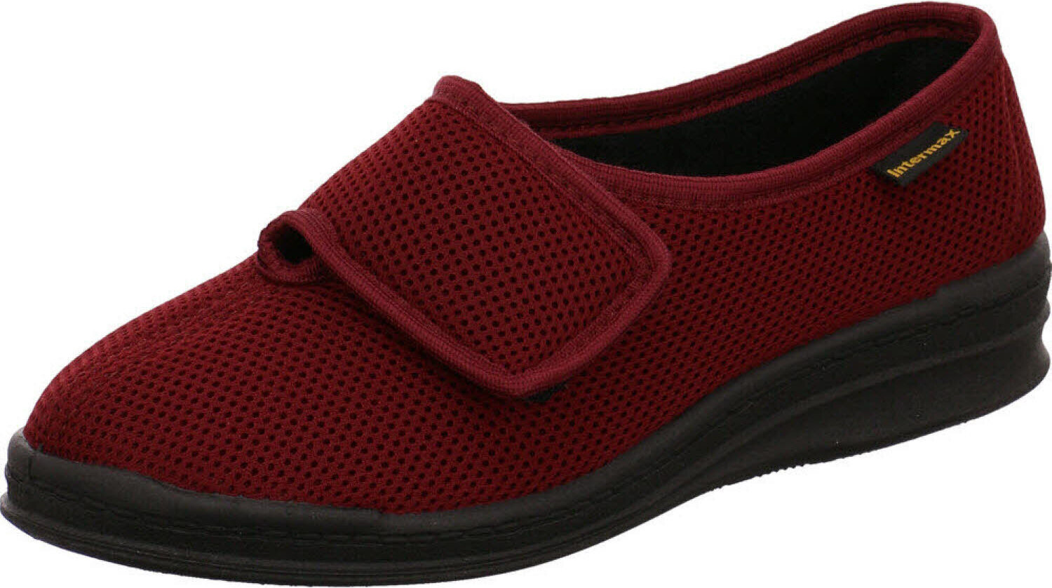Dieser Damen-Hausschuh von Intermax in Bordeaux Rot, überzeugt durch sein besonders leichtes Gewicht. +