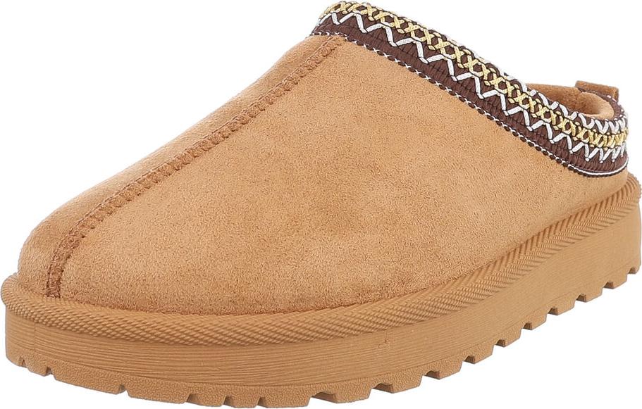 Ital-Design Bequeme Clogs für Damen mit dekorativen Details Snowboots (90457954) Flach Flache Stiefeletten in Camel (braun)