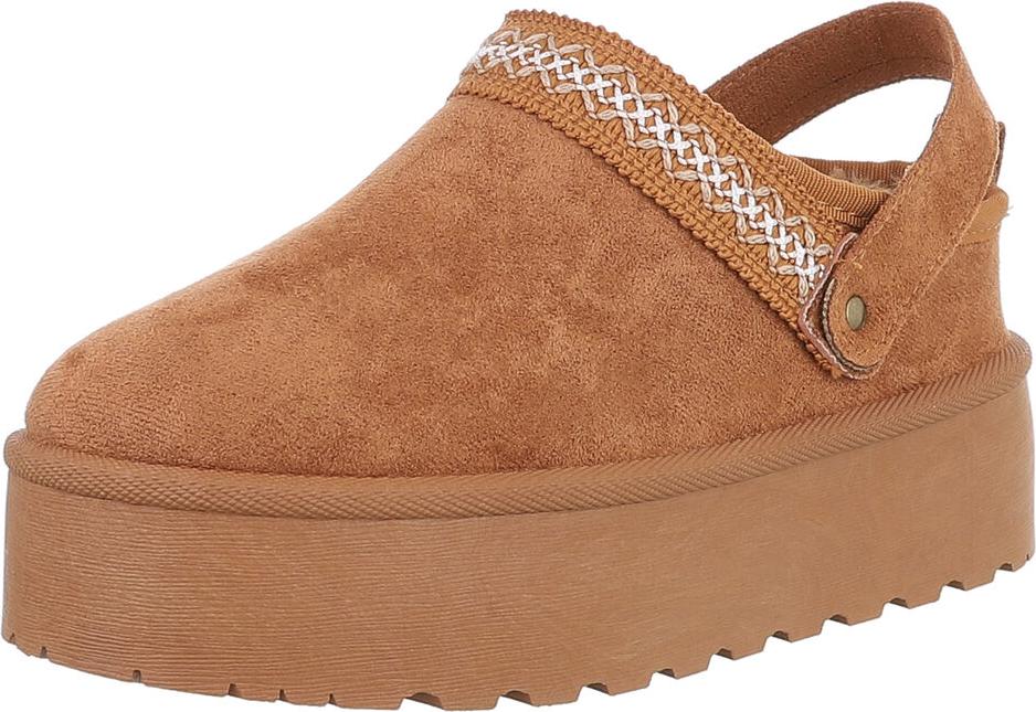 Ital-Design Bequeme Freizeitschuhe mit Riemen für Damen Snowboots (90169599) Flach Stiefeletten in Camel (braun)