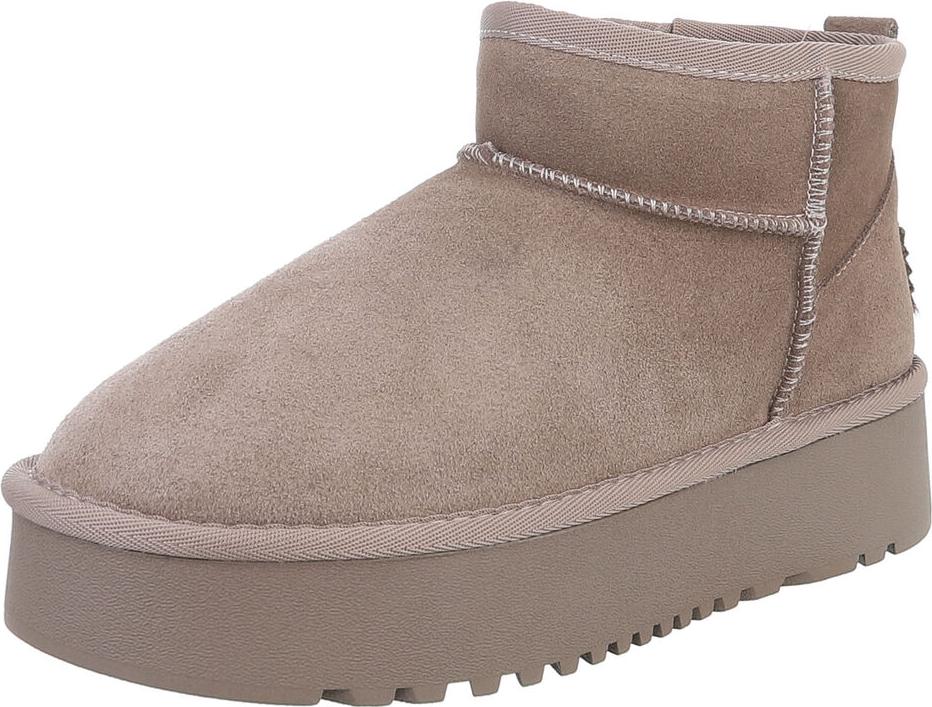 Ital-Design Bequemer Plattform-Echtleder-Schuh für Alltag und Freizeit Snowboots (90471170) Flach Plateaustiefeletten in Hellbraun (braun)