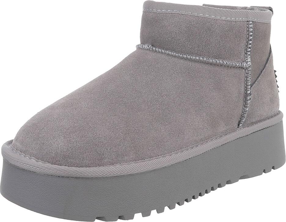 Ital-Design Bequemer Plattform-Echtleder-Schuh für Alltag und Freizeit Snowboots (90471182) Flach Plateaustiefeletten in Grau (grau)