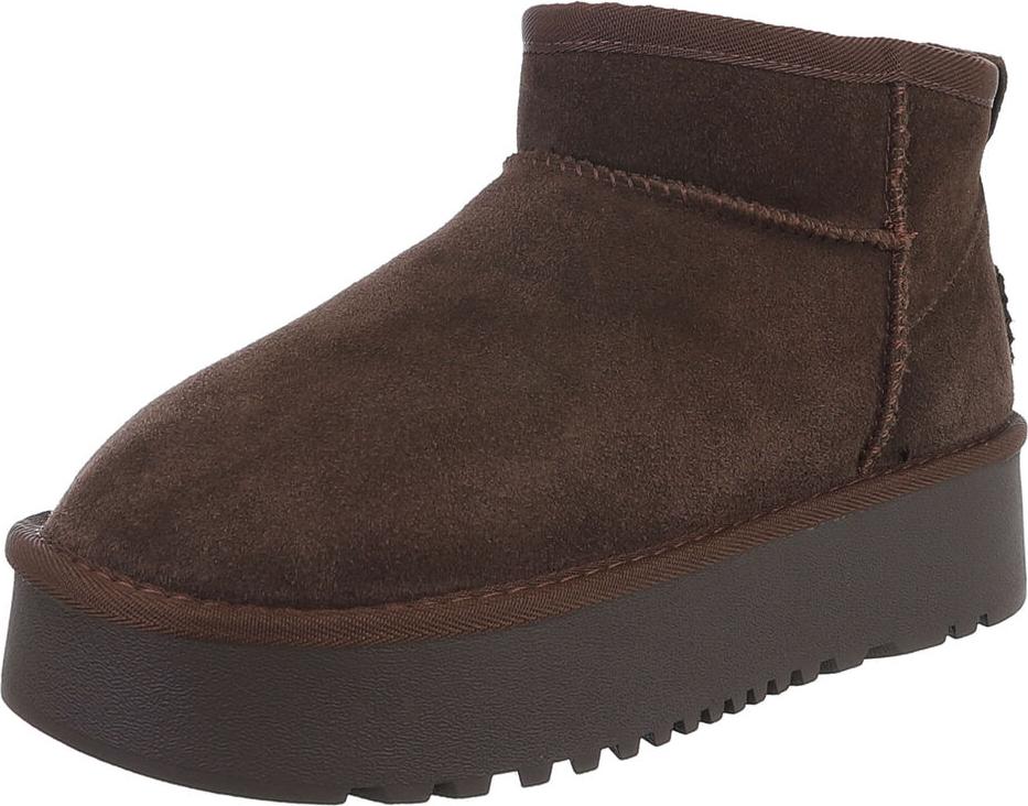 Ital-Design Bequemer Plattform-Echtleder-Schuh für Alltag und Freizeit Snowboots (90471195) Flach Plateaustiefeletten in Braun (braun)