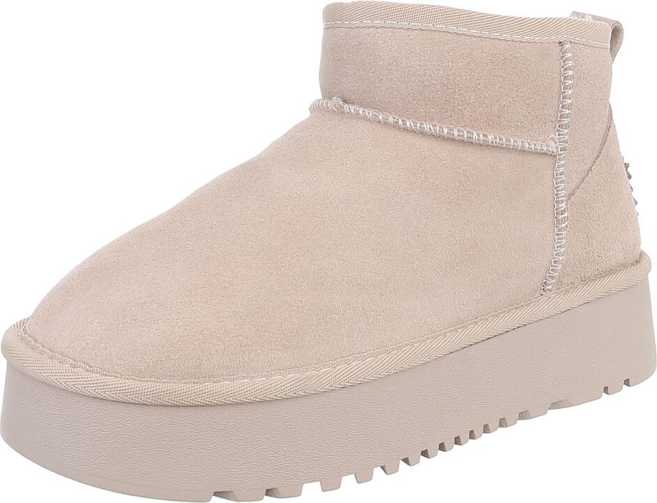 Ital-Design Bequemer Plattform-Echtleder-Schuh für Alltag und Freizeit Snowboots (90471210) Flach Plateaustiefeletten in Beige (beige/braun)