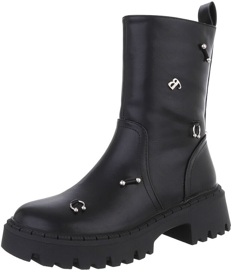 Ital-Design Damen Bikerschuhe Biker Westernstiefelette (87451863) Blockabsatz Stiefeletten in Schwarz (schwarz)