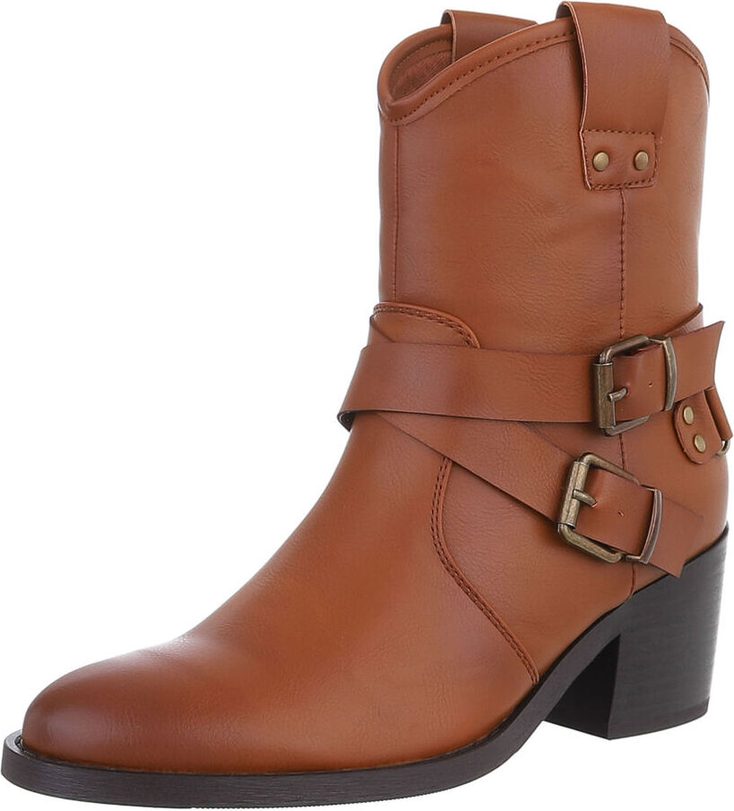 Ital-Design Damen Bikerschuhe Biker Westernstiefelette (87740321) Blockabsatz Stiefeletten in Camel (braun)