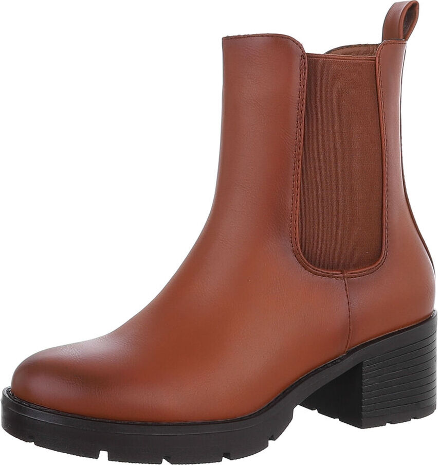 Ital-Design Damen Chelsea Freizeit Chelseaboots (87531803) Blockabsatz Stiefeletten in Camel (braun)