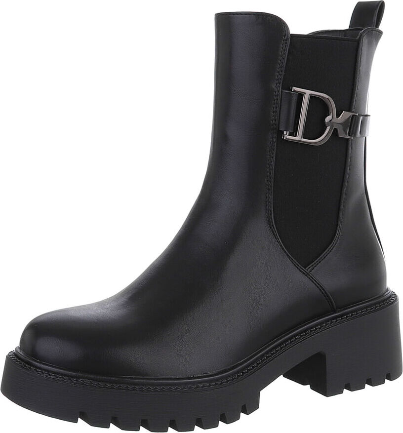 Ital-Design Damen Chelsea Freizeit Plateaustiefelette (87451944) Blockabsatz Stiefeletten in Schwarz