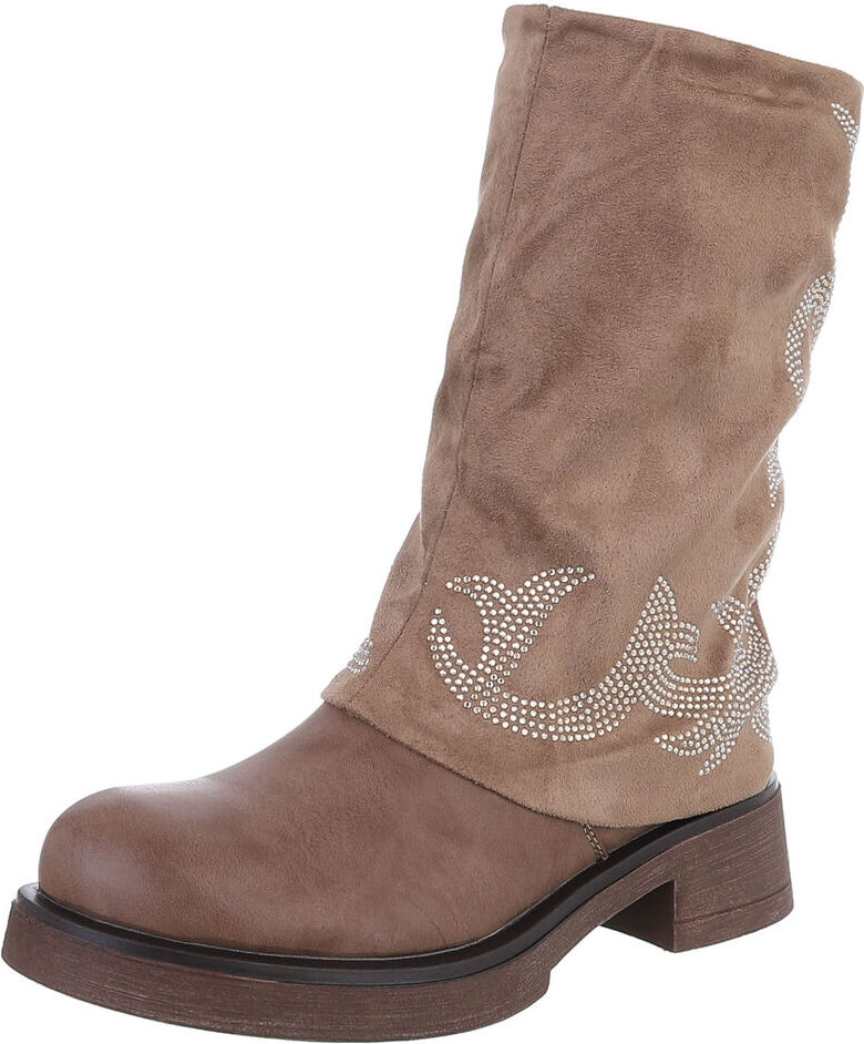 Ital-Design Damen Cowboyboots Biker Westernstiefel (88519559) Blockabsatz Flache Stiefel in Hellbraun (braun)