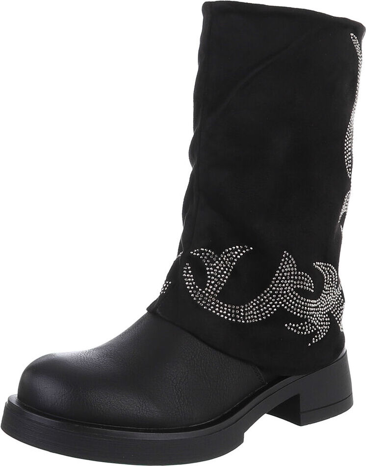 Ital-Design Damen Cowboyboots Biker Westernstiefel (88519568) Blockabsatz Flache Stiefel in Schwarz (schwarz)