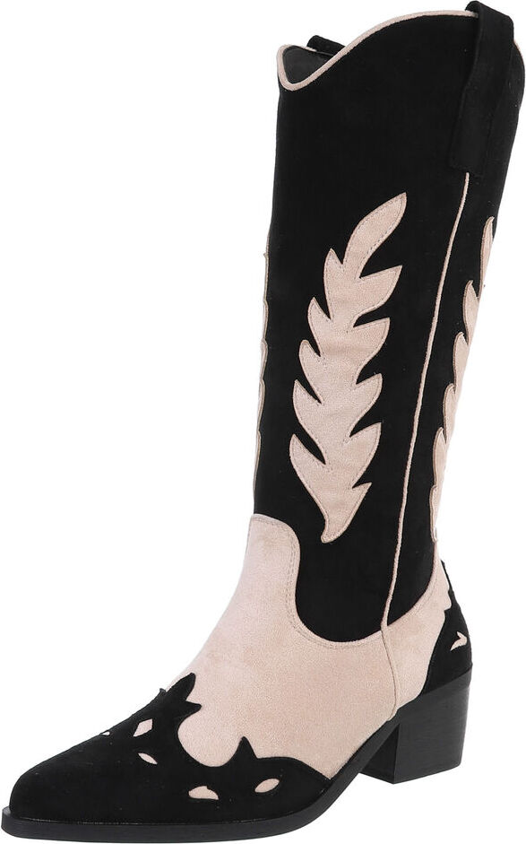 Ital-Design Damen Cowboyboots Western Westernstiefel (88460426) Blockabsatz Stiefel in Schwarz (beige/schwarz)