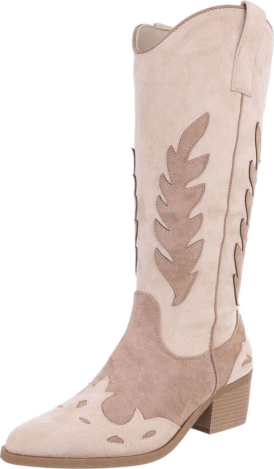 Ital-Design Damen Cowboyboots Western Westernstiefel (88460432) Blockabsatz Stiefel in Beige (beige/braun)