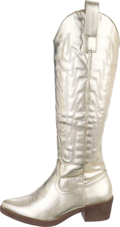 Ital-Design Damen Cowboyboots Western Westernstiefel Blockabsatz Western- & Bikerstiefel in Gold (gold)