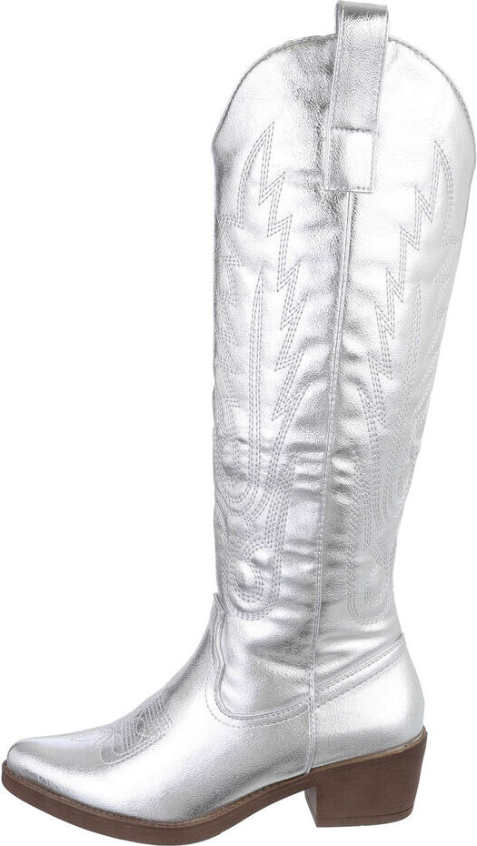 Ital-Design Damen Cowboyboots Western Westernstiefel Blockabsatz Western- & Bikerstiefel in Silber (silber)