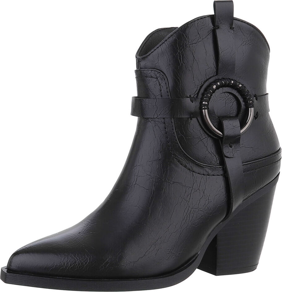 Ital-Design Damen Cowboyboots Western Westernstiefelette (88577608) Blockabsatz Stiefeletten in Schwarz (schwarz)