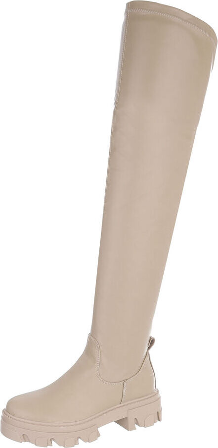Ital-Design Damen Freizeit Plateaustiefel (87124828) Blockabsatz Overknees in Beige (beige/braun)