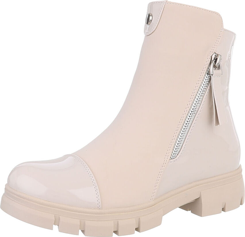 Ital-Design Damen Freizeit Stiefelette (87108537) Blockabsatz Plateaustiefeletten in Beige (beige/braun)