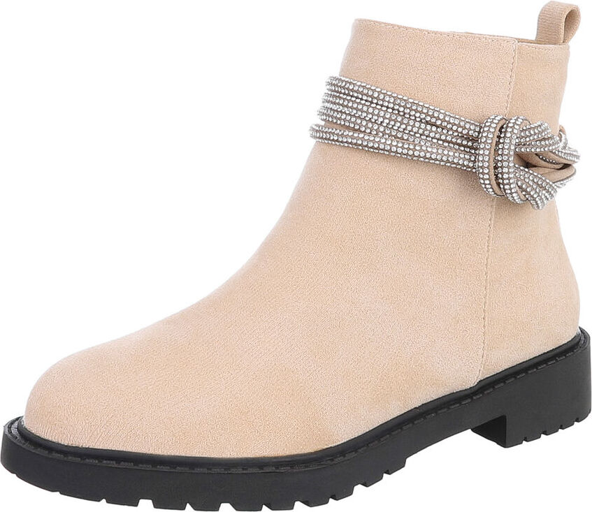 Ital-Design Damen Freizeit Stiefelette (87108785) Blockabsatz Flache Stiefeletten in Beige (beige/braun)